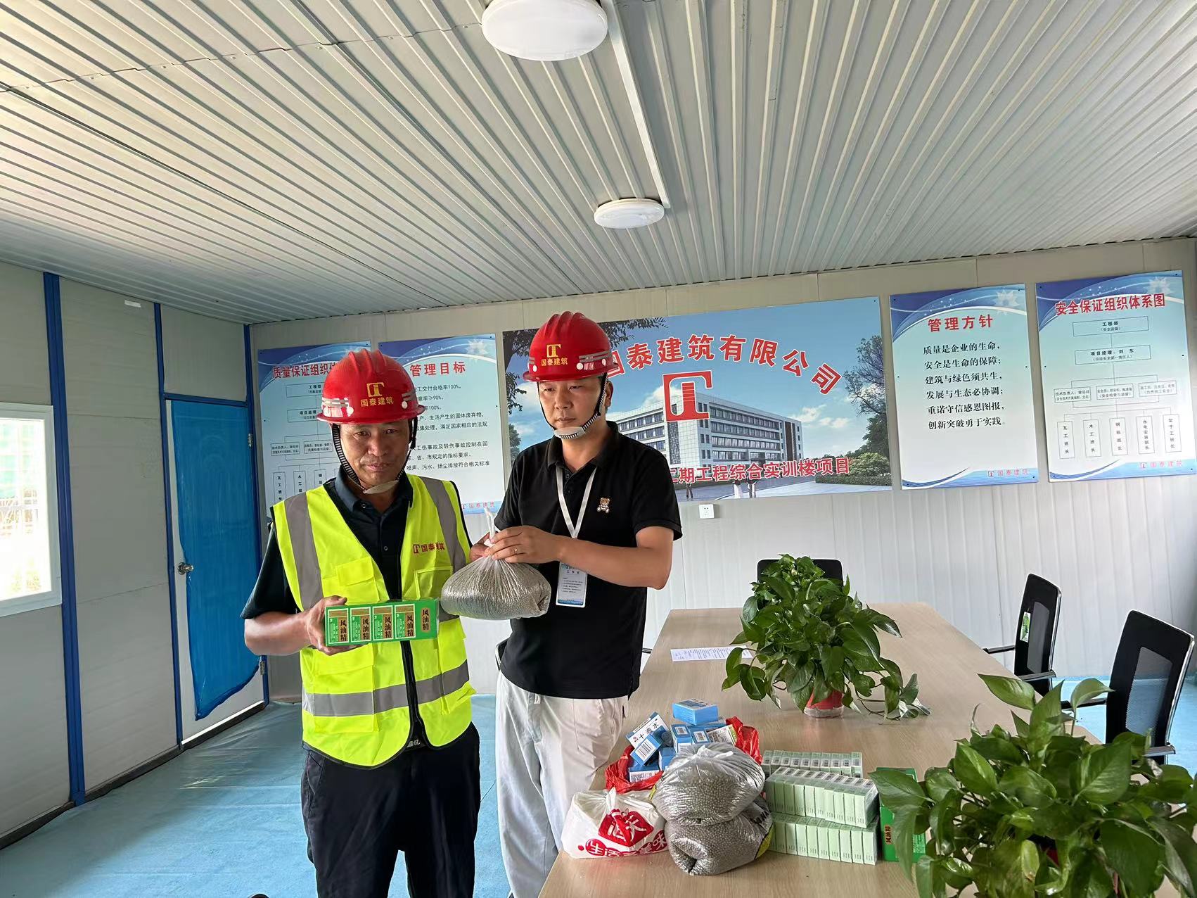 國泰建筑總經(jīng)理張四兵在項目現(xiàn)場提醒各部門要做好防暑降溫工作,各項目工地的一線工人是項目建設的中堅力量,吃住在工地、工作在工地,面對酷暑高溫和繁重工作,非常辛苦,向他們表達了敬意和感謝,并勉勵全體職工抓好安全,確保身體健康。要求各項目部要將夏季安全生產(chǎn)工作擺在重要位置,嚴格執(zhí)行項目安全規(guī)定,關心愛護一線工人,教育引導廣大職工在保健康、保安全、保質(zhì)量的同時,高效率、高標準推進項目建設。一句句暖心又真切的話語縈繞在每位職工的心頭。