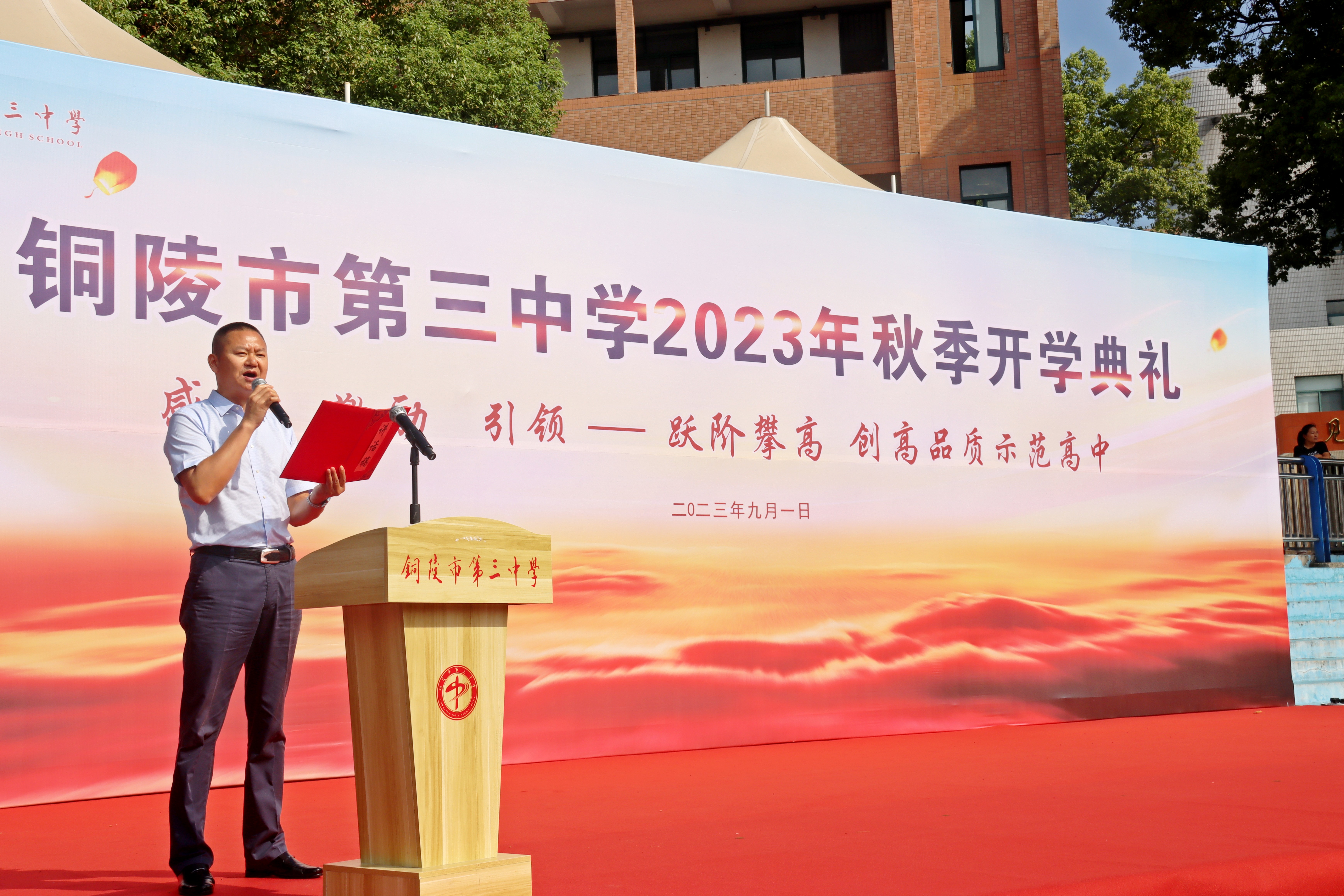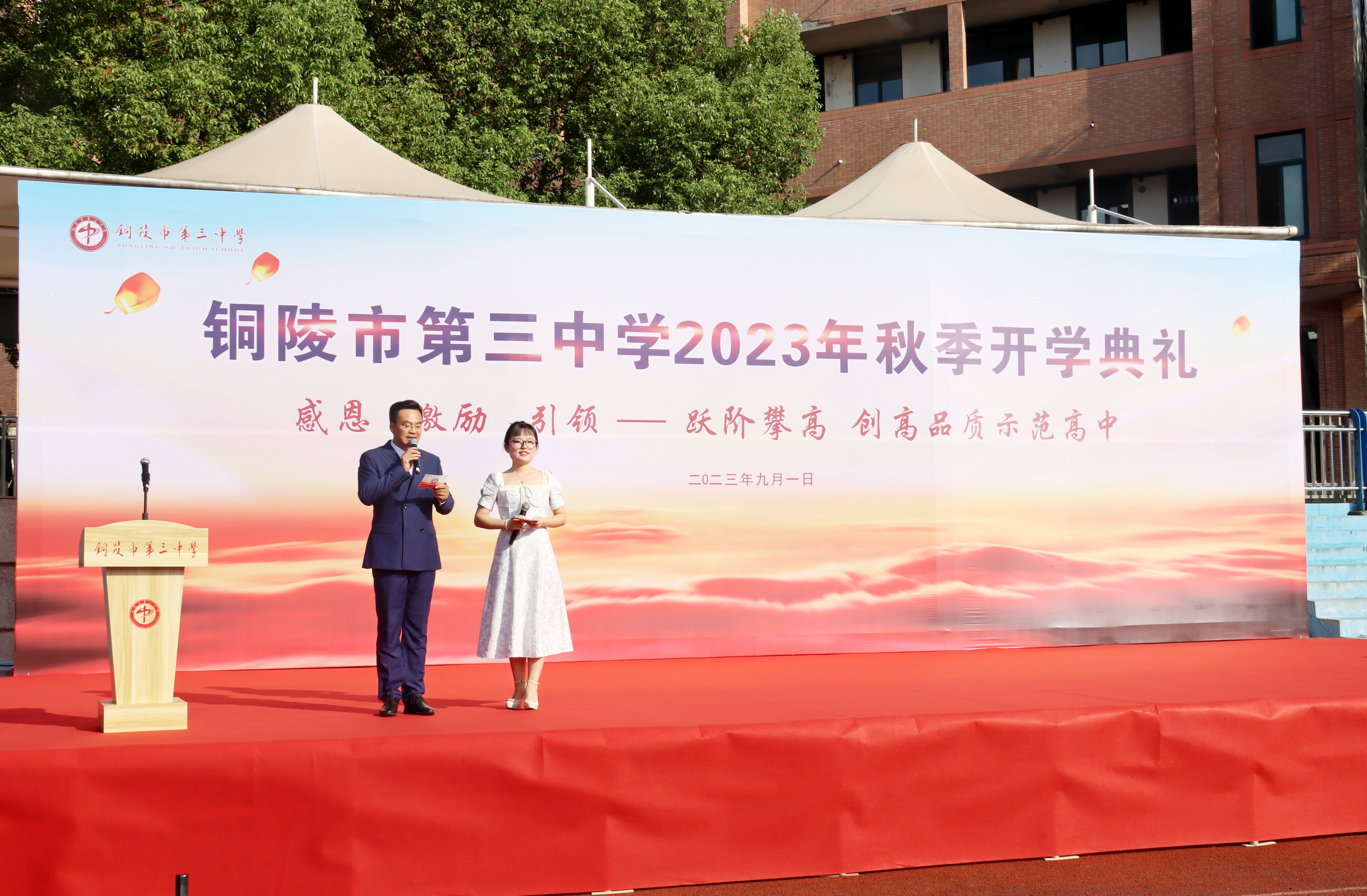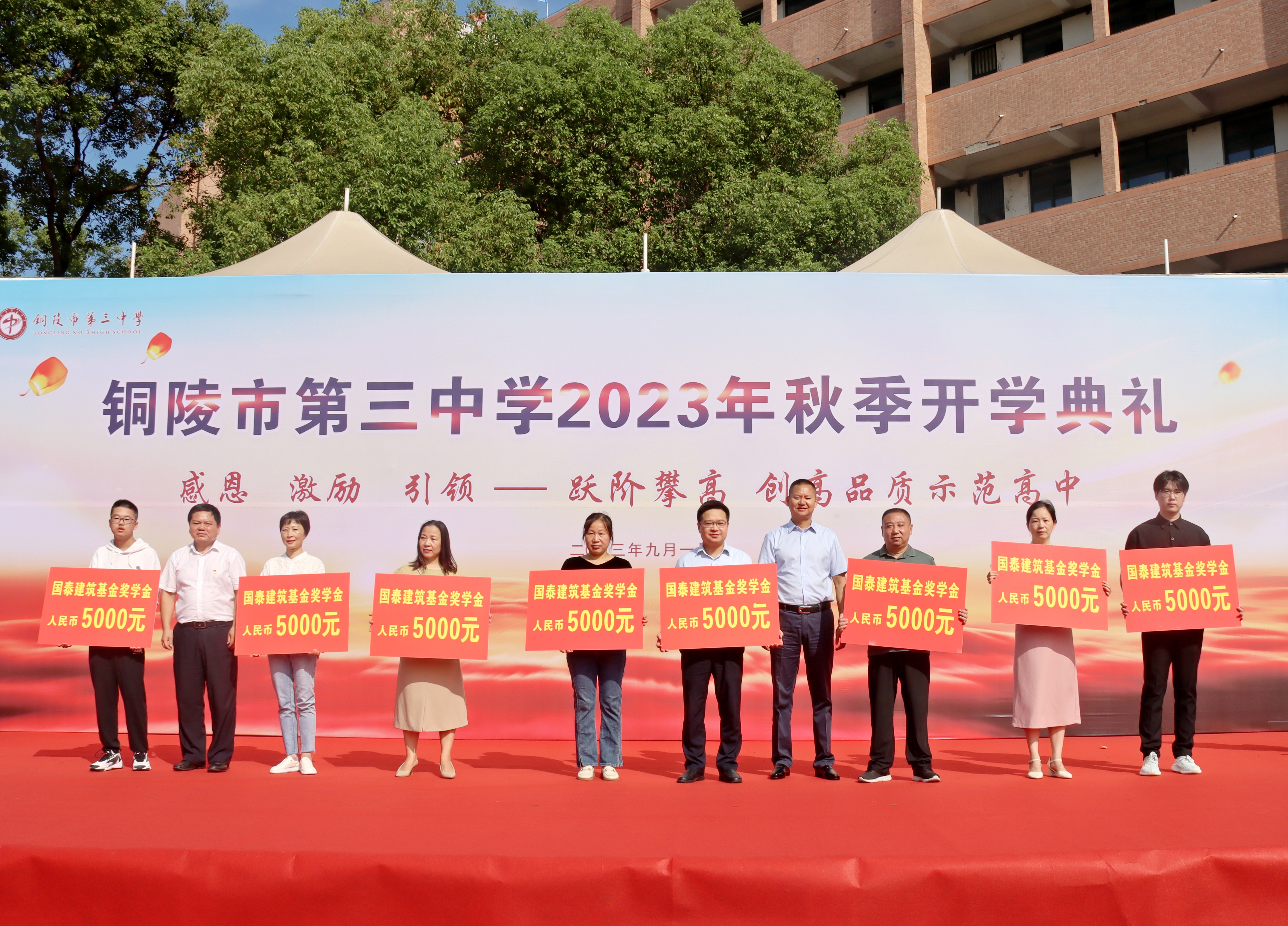 2023年9月1日上午,銅陵市第三中學(xué) 2023 年秋季開學(xué)典禮暨國泰建筑勵(lì)志獎(jiǎng)學(xué)金頒獎(jiǎng)儀式圓滿落幕。市三中校黨委副書記、副校長王合進(jìn),校黨委副書記張國榮,校黨委委員、副校長章學(xué)標(biāo),校黨委委員、副校長徐松成及全體三中師生參加活動(dòng)。國泰建筑董事長張自州應(yīng)邀出席。