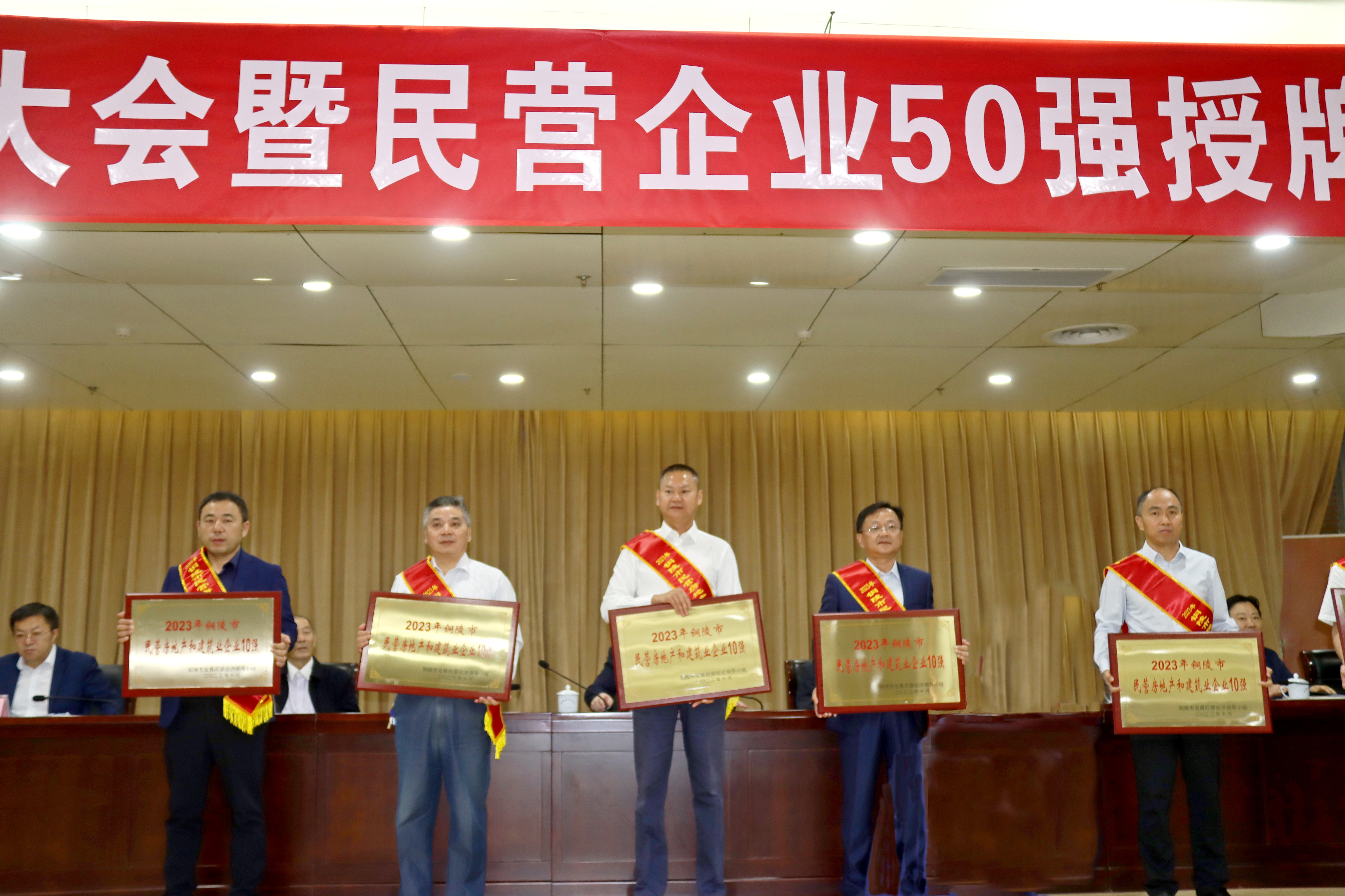 胡啟書(shū)宣讀了“2023年銅陵市民營(yíng)企業(yè)50強(qiáng)”名單,并向所有登榜企業(yè)表示熱烈的祝賀。國(guó)泰建筑再度榮登50強(qiáng)榜單,這是公司連續(xù)第12年獲得此項(xiàng)榮譽(yù)。值得一提的是,今年還公布了民營(yíng)房地產(chǎn)與建筑業(yè)企業(yè)10強(qiáng)名單,國(guó)泰建筑同樣躋身其中。