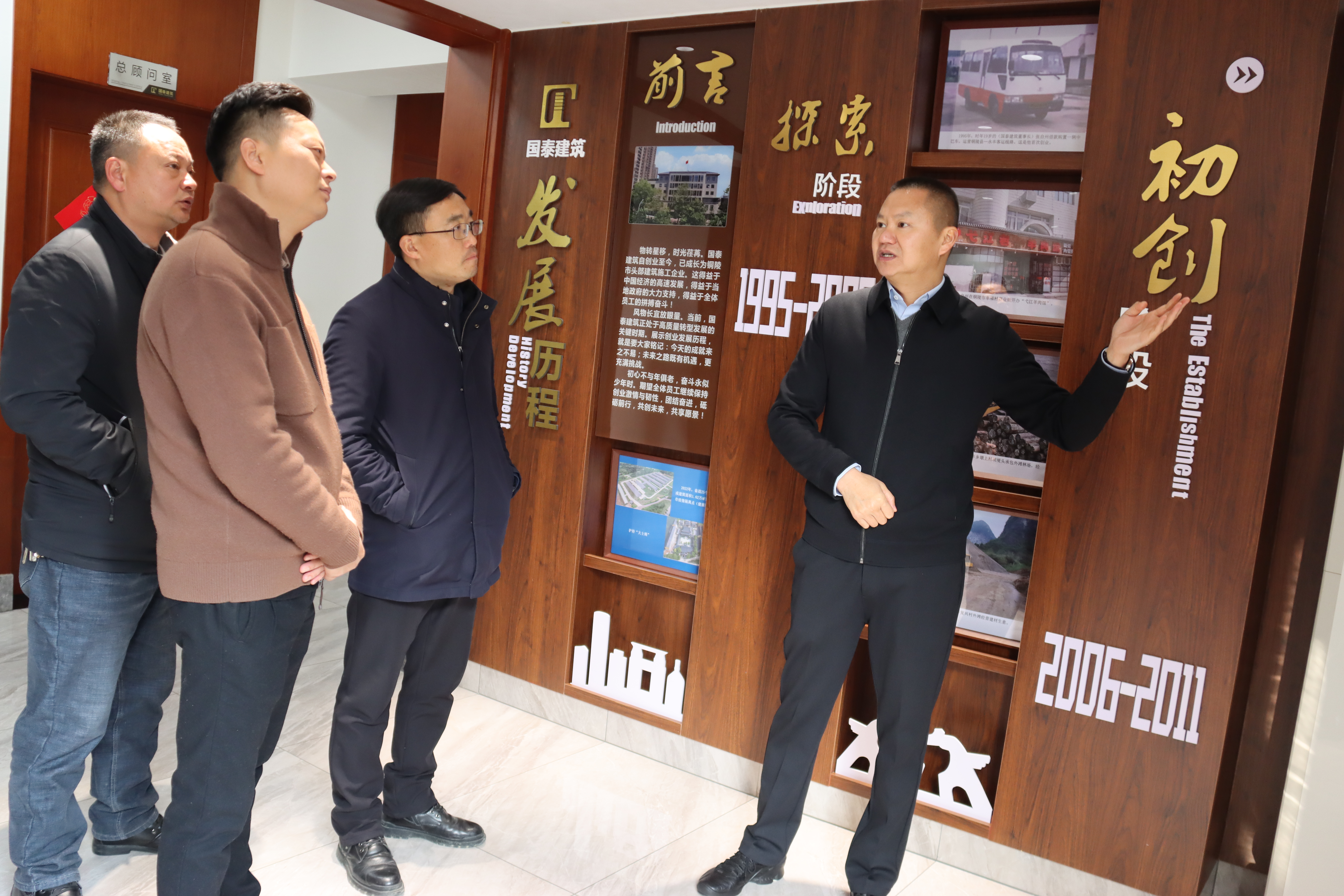 許書記一行依次參觀了國泰建筑的辦公區(qū)域、員工健身房、發(fā)展歷程展廊、正念園等處,詳細(xì)了解了公司的組織架構(gòu)、發(fā)展歷史、員工關(guān)懷、項(xiàng)目建設(shè)和社會(huì)責(zé)任等方面的實(shí)際情況。隨后,雙方在公司二樓會(huì)議廳進(jìn)行了深入的座談交流。